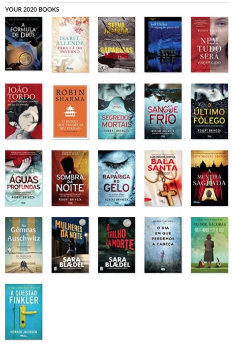 No meu perfil no Goodreads estabeleci para 2021 a meta de 15 livros. É exequível, dá pouco mais de um livro por mês, prevendo que tenho uns quantos thrillers para ler e que, espero, sejam de leitura voraz.